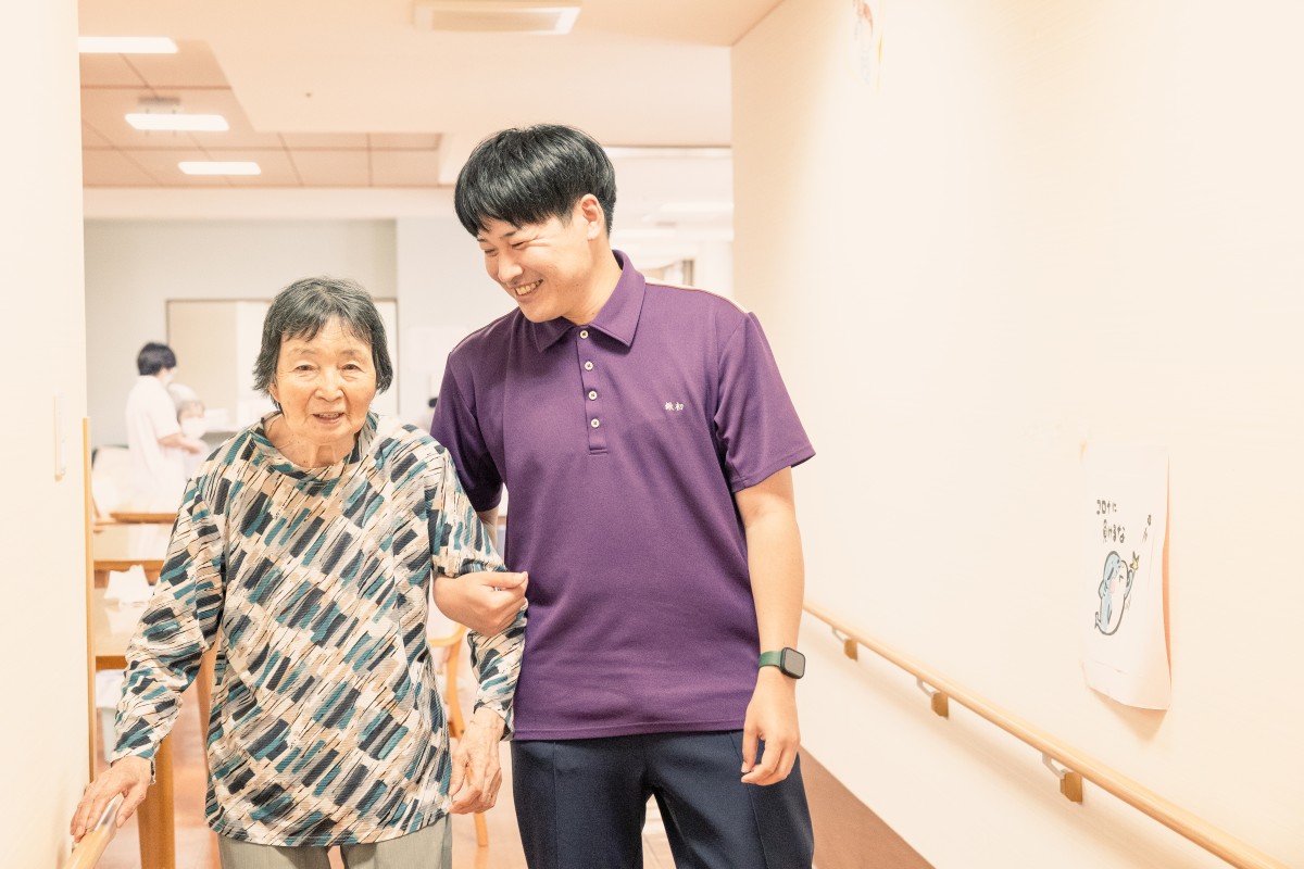 利用者様1名に対して、専任の介護士が24時間体制でサポート。